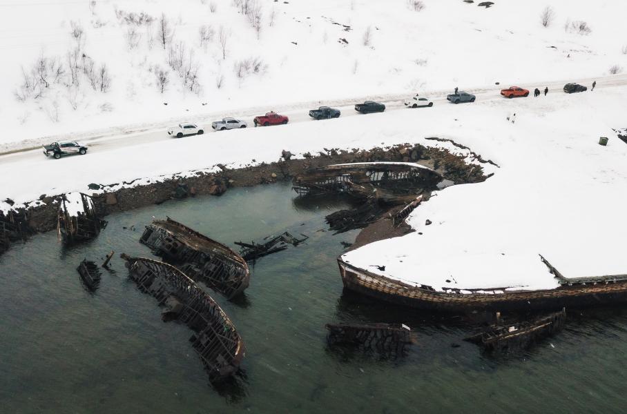 Как ни странно, в Териберке, что стоит на берегу холодного Баренцева моря, наши яркие внедорожники оказались не самыми роскошными машинами: после «Левиафана» туда явно поехали туристы — за скалами, водопадами, суровыми каменистыми пляжами, за рыбными деликатесами, за общением с тюленями или духами Севера (кто во что горазд).
