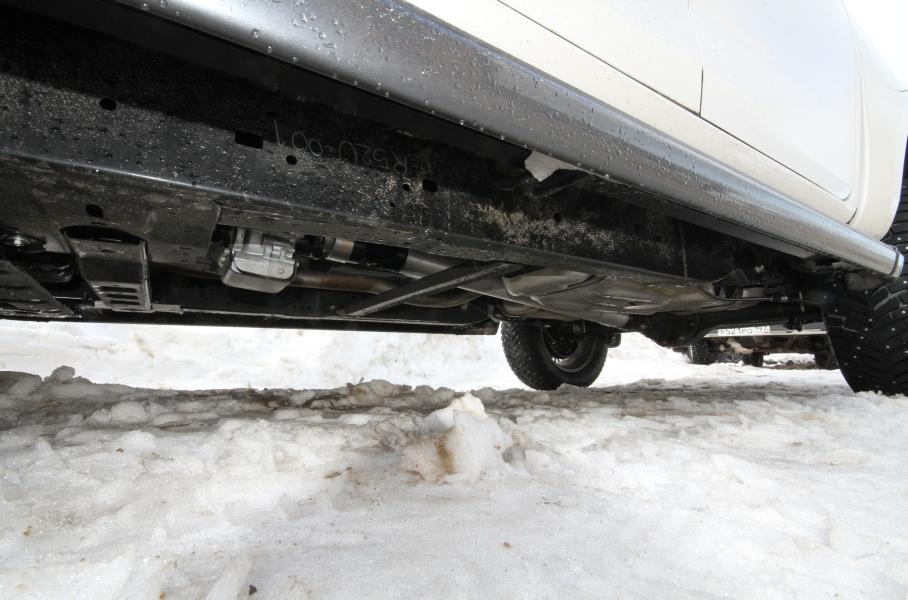 Хорошо, что снизу нет выступающих деталей, и даже раздатка практически целиком скрыта между лонжеронов рамы