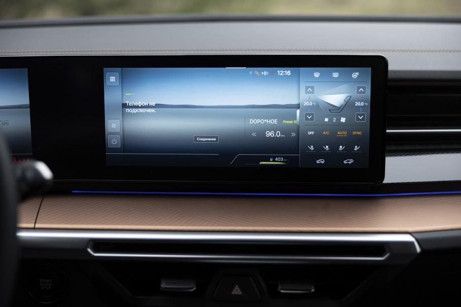 Планшету катастрофически не хватает яркости и контрастности, а интерфейс мультимедийки так же скуден, как в других KGM. Аудиосистема звучит бледно; не предусмотрена беспроводная зарядка; вокруг основательного селектора невнятные полочки, на которых невозможно разместить ни один смартфон; сенсорная панель климата сильно бликует; управление треками на руле выполнено нелогично. И так далее — большинством второстепенных функций лучше пользоваться как можно реже.