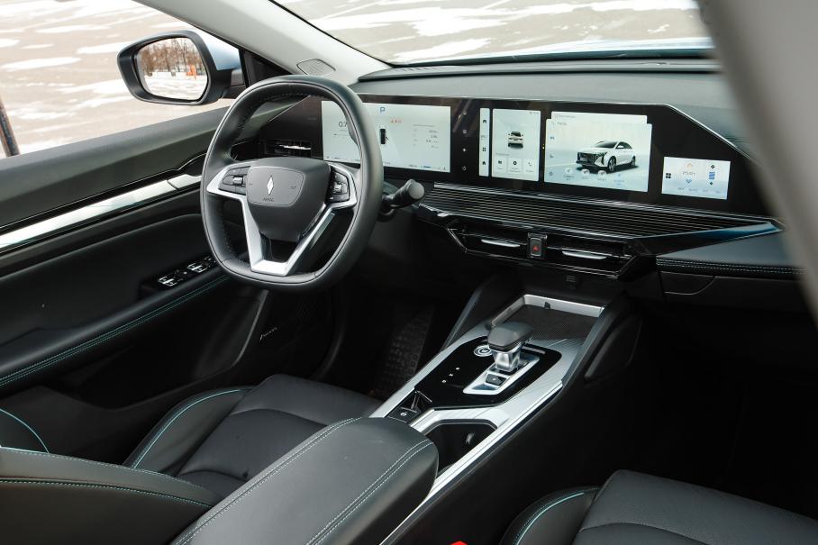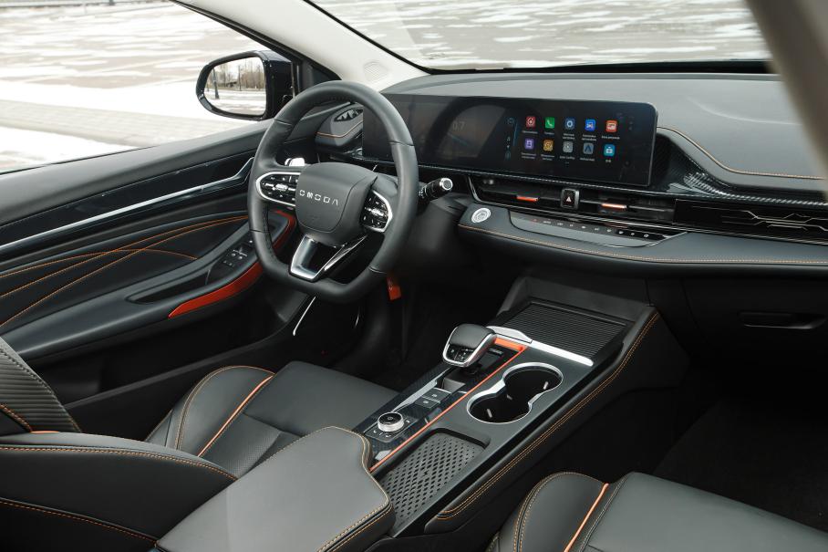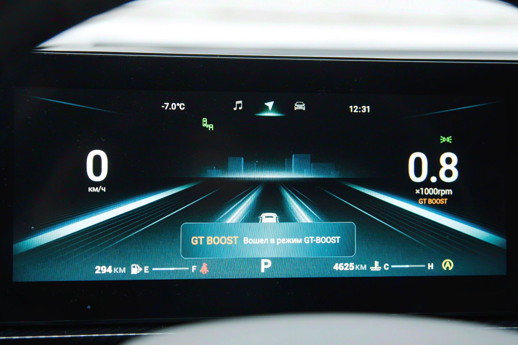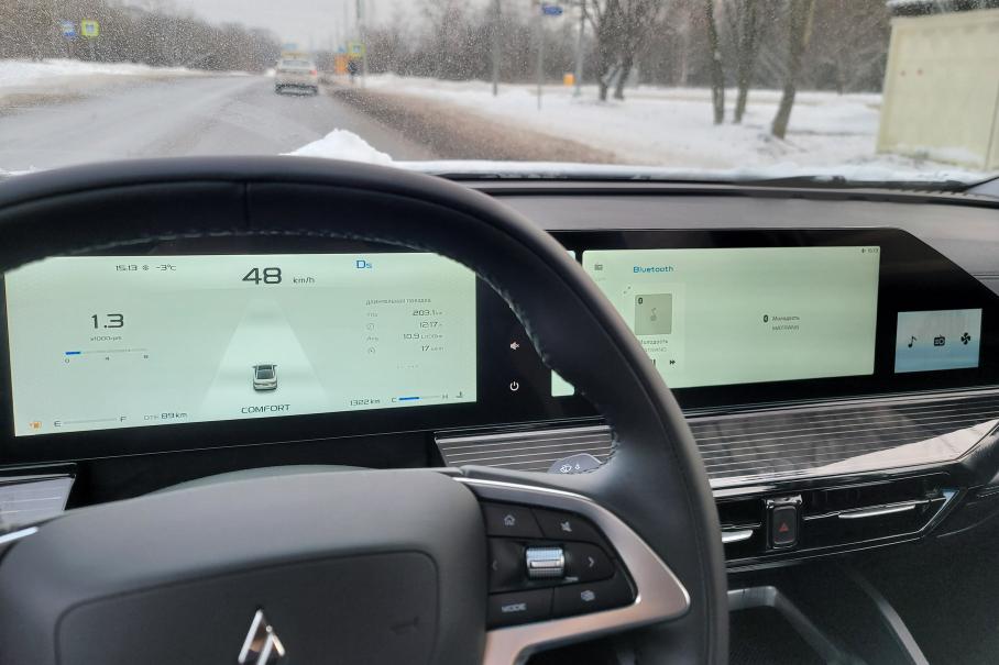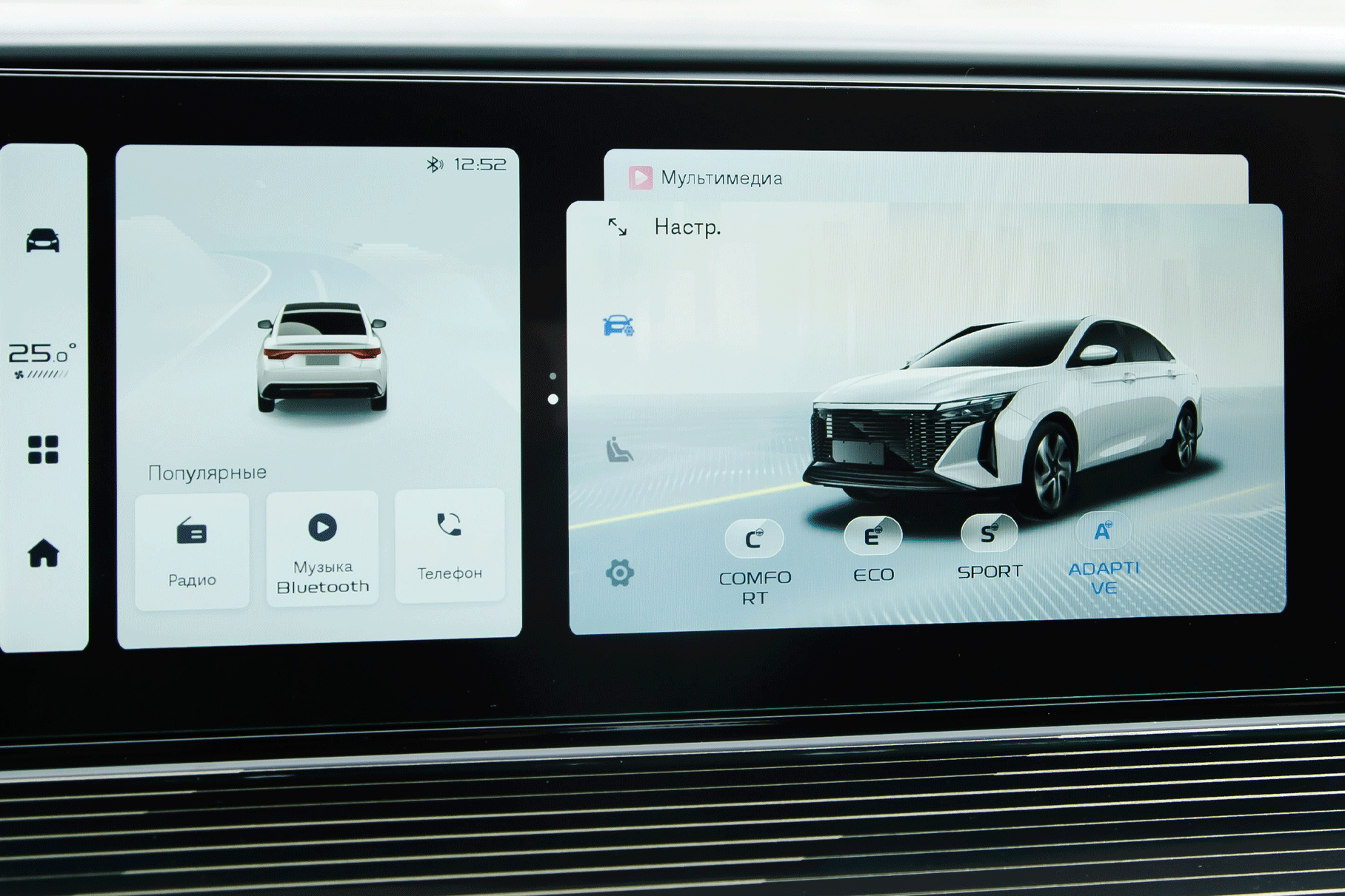 Но почти во всём остальном седан Omoda выигрывает: здесь понятная мультимедийка с полноценной поддержкой карплея. Правда, слишком агрессивного при подключении по воздуху — система просто не даёт переключиться на управление музыкой или картами на смартфоне и постоянно возобновляет подключение даже когда пытаешься отключиться вручную. Музыка звучит лучше ливановской, хоть и ненамного. Приборка более информативная и удобнее управляется, разве что изображение на ней слишком зернистое.