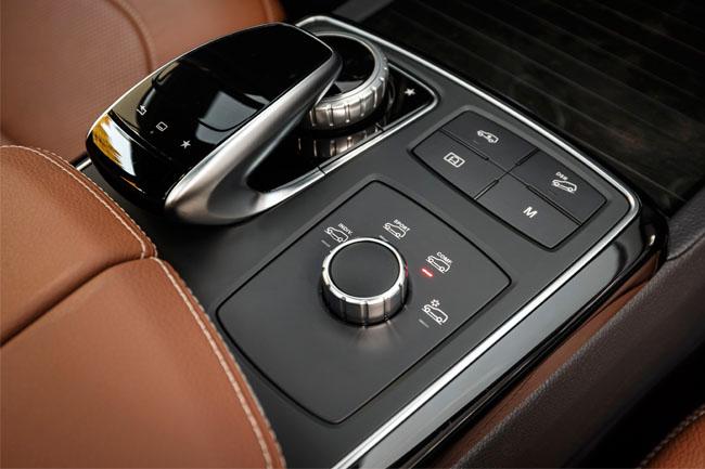 Там, где у автомобиля здорового человека находится рычаг КПП, у автомобиля Mercedes-Benz расположился селектор (или, как его называют немцы, «роторный актуатор») системы Dynamic Select. В зависимости от модификации, он имеет разные положения и регулирует разные параметры (отклик газа, усилие на руле, алгоритм работы КПП, жесткость пневмоподвески, громкость выхлопа и прочее). Рядом с ним — шайба управления меню и нависший над ней «тачпад» с тремя кнопками снизу. Все это сверкающее, нажимающееся и крутящееся великолепие традиционно управляет традиционной мультимедийкой «Мерседеса». А сам рычаг КПП так же традиционно торчит из рулевой колонки.