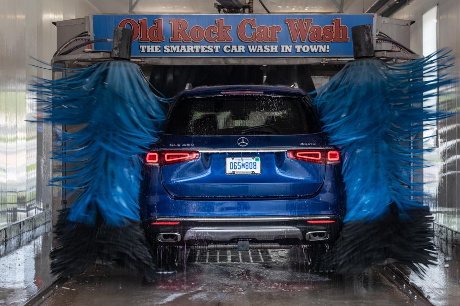 У нового GLS имеется режим мойки, когда складываются зеркала, закрываются все окна, и кузов опускается на пневме в нижнее положение. Но представить себе человека, который будет загонять новый GLS в американскую автоматическую мойку, для которой это сделано, нам довольно трудно