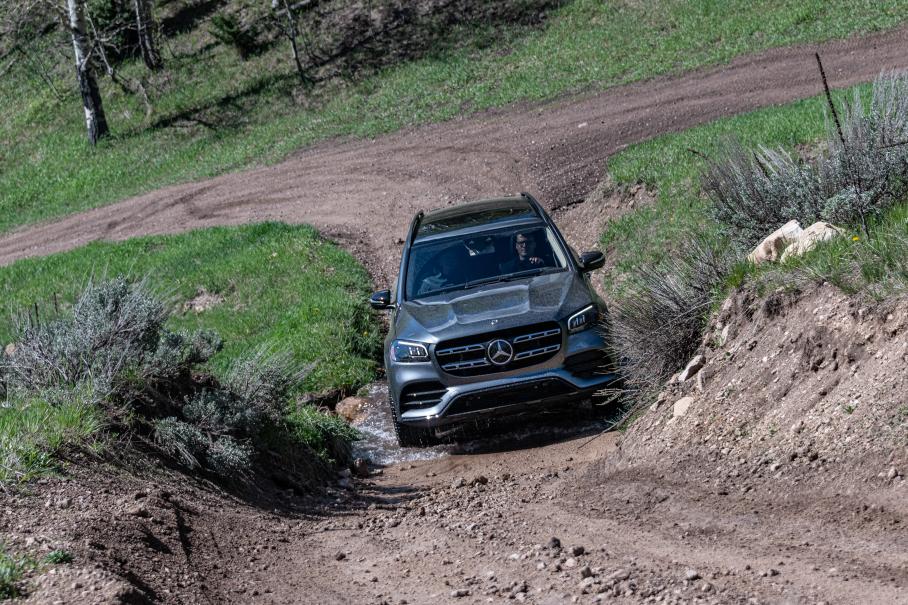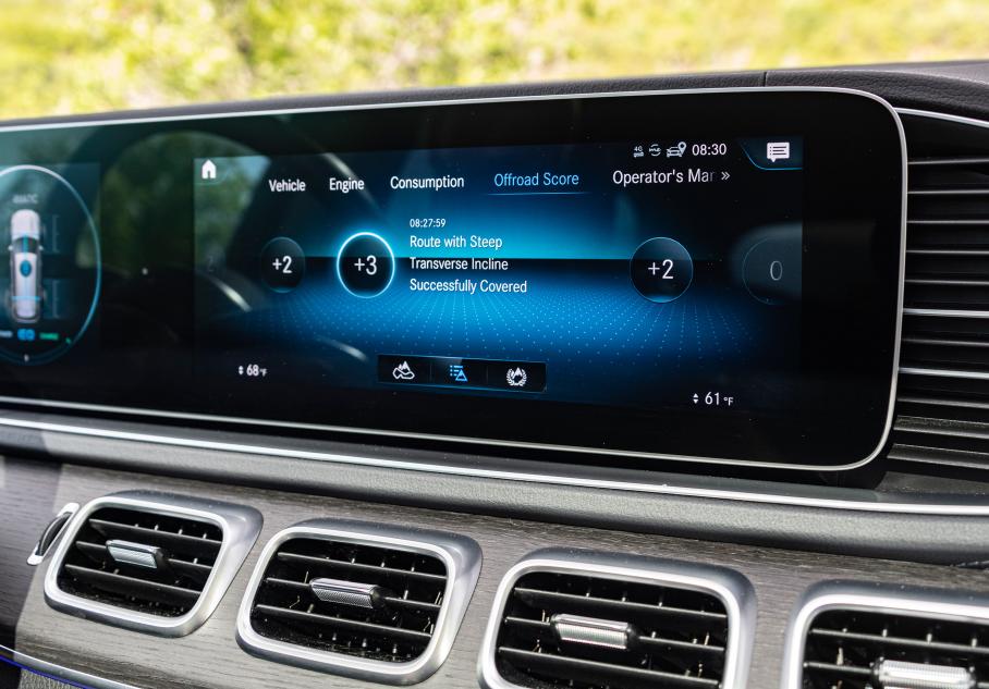Внедорожный арсенал GLS достаточно стандартный — регулировка пневмы по высоте, механическая блокировка межосевого дифференциала, электронная имитация блокировки переднего и заднего дифференциалов, понижайка, контролируемый спуск с горы, где вы задаете максимальную скорость спуска на круизе.