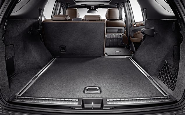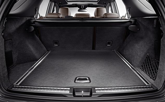 Багажник отделан мягким ворсистым ковром, предусмотрены специальные направляющие для механизма удержания груза, погрузочная высота не так велика для внедорожника, а дверной проем очень широкий.