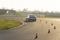 Разгон с места в пол по сухому, затем торможение с АБС в контрольном створе (скорость около 80 км/ч), за которым начинается мокрый участок. Измерительный прибор считает длину тормозного пути, результаты заносятся в протокол