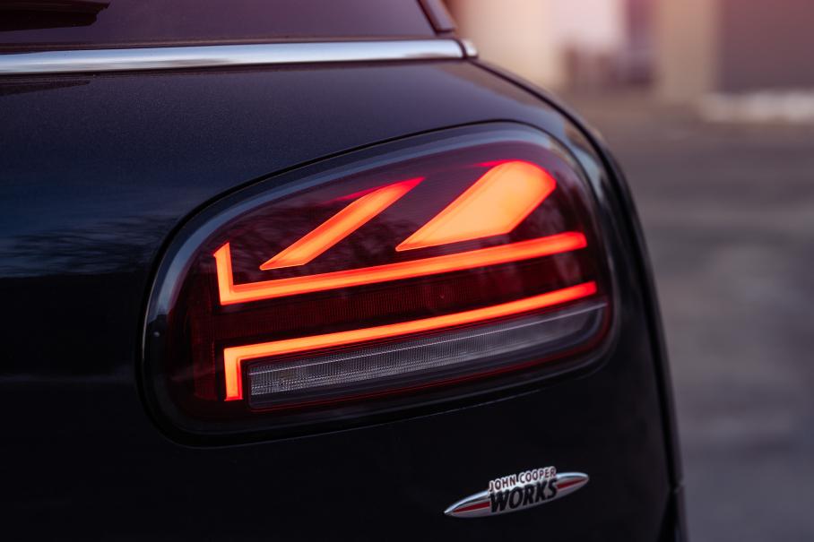 А ведь обе ведущие оси делают наш JCW Clubman самым быстрым Mini в истории — единственным, выезжающим из 5 секунд до сотни! Это настоящий «слипер», который при всей своей няшной внешности может со старта кого угодно разорвать на британский флаг, изображённый в графике задней оптики. Зверский мотор и автомат-скорострел (в лучшем смысле этого слова) швыряют тягу на все колёса так убедительно и моментально, что от Mini такого просто не ожидаешь. Просто новый уровень динамики для техники этой марки!