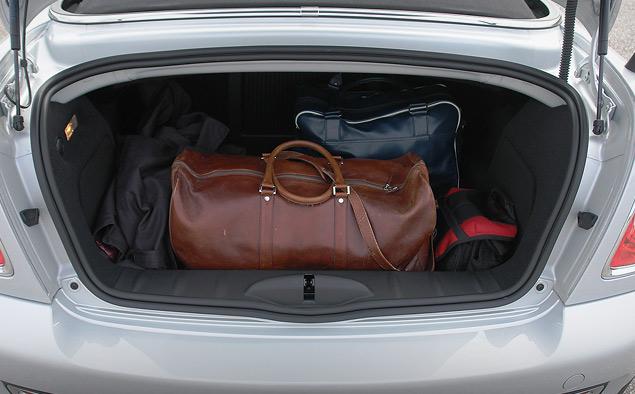Можно положить пару-тройку больших чемоданов, а можно даже попытаться просунуть в специальный лючок лыжи или «доску» для катания. Но, во-первых, кататься тогда придется одному (иначе длинномер упрется в переднее сиденье), а во-вторых, вряд ли кому-то взбредет в голову ездить на родстере с тонюсенькой крышей зимой.