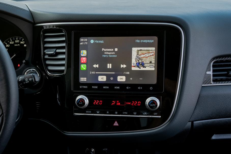 Обнаружил я и другие отличия от привычного Аулендера. С тех пор, как я в прошлый раз садился за этот трёхспицевый руль, кроссовер получил пульт климат-контроля от Pajero Sport с удобными крутилками и новую мультимедиа-систему. Вернее, даже две: и на головном устройстве Яндекс (комплектации Intense+ и Instyle), и на топовой системе Mitsubishi Connect (комплектация Ultimate) диагональ экрана увеличилась с семи до восьми дюймов.