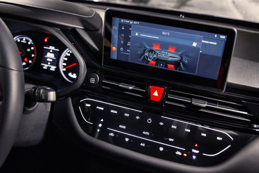 Мультимедийка — слабое место. Дисплей опрятно вписан в панель, качество графики и дизайн интерфейса приятные. Но только на первый взгляд. Попытки пролистать меню или даже вытянуть сверху «шторку» приводят к сильным тормозам картинки и быстрому утомлению глаз — частота обновления матрицы очень низкая, поэтому фразы в меню дёргаются и размываются. Перевод пока тоже кривоват, но это вскоре поправят в новых прошивках