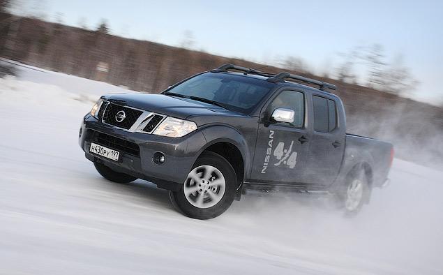 =На скользкой дороге лучше использовать полноприводный режим трансмиссии – на заднем приводе Navara того и гляди уйдет в занос.