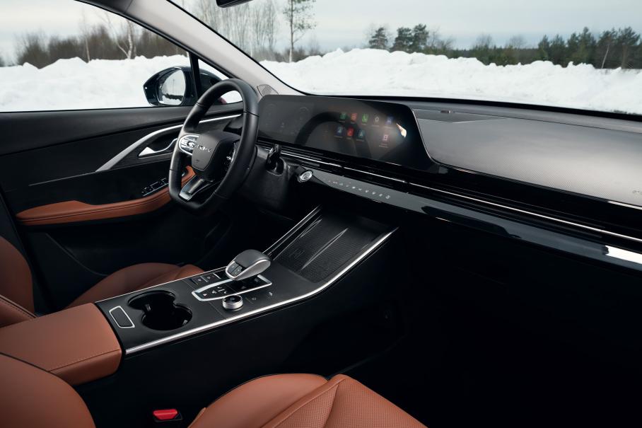 По проходимости здесь те же возможности, что и у полноприводного Exeed LX, так как технически эти модели идентичны. Три электронных офроуд-режима (4х4, снег, грязь) небесполезны, а трансмиссия и имитация блокировок достаточно эффективны в глубоком снегу — беспомощным такой автомобиль не назвать.