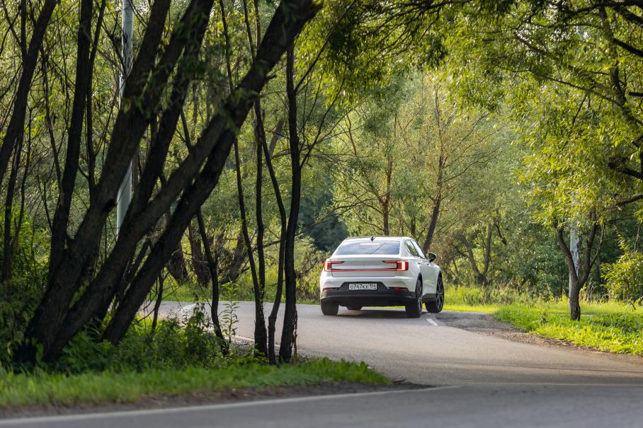 Даже если с приличным перебором хода резко повернуть руль, Polestar 2 скорее удивит способностью войти в поворот, чем спасует под такой провокацией. Передняя ось вообще никогда не «плужит» мимо траектории — она или цепляется, или скользит уже синхронно с задней