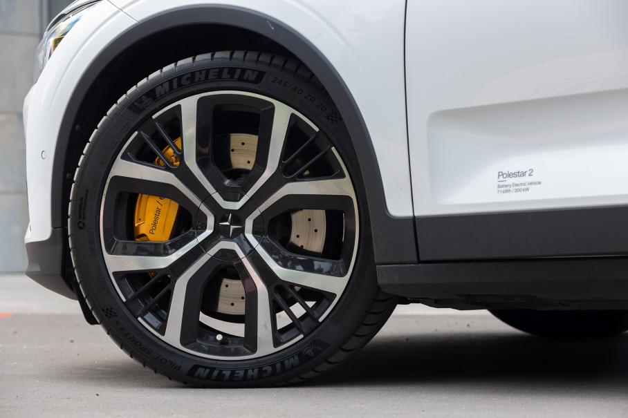 Только чтобы прочувствовать это, подвеску надо хорошо нагрузить. И стоит попробовать раз — остановиться будет уже сложно. Несмотря на огромную массу, Polestar 2 вообще не склонен ни к каким скольжениям: баланс поворачиваемости абсолютно нейтральный, а запас держака благодаря расположенному низко и посередине продольной оси центру масс, а также сверхцепким шинам Michelin Pilot Sport 4S — невероятный.