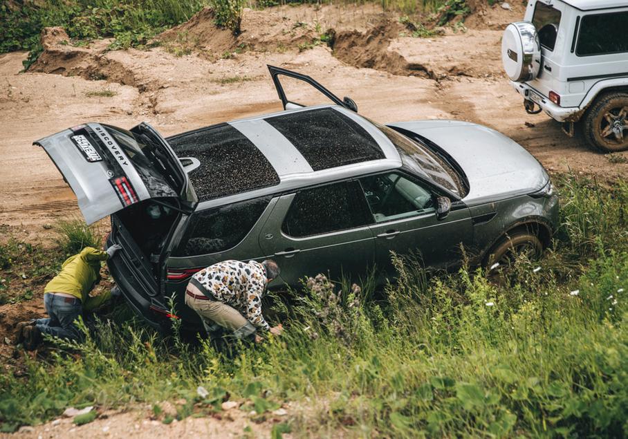 Британец радостно садится на пузо, электроника включает режим «последнего шанса», выбирая остаток хода подвесок и приподнимая кузов еще на 30 миллиметров, но это не спасает. Дело в том, что если человек (это я про себя) идиот и лезет куда попало, не разбирая дороги – против него бессильны даже самые крутые внедорожники. Выехал бы из этой же ловушки «Гелик»? Нет, точно нет. Потому что даже после получаса археологического фитнеса с применением шанцевого инструмента наш белый друг смог выдернуть Discovery только с пятой попытки.