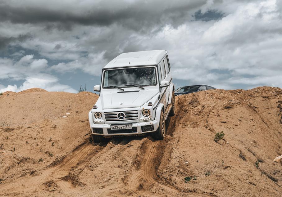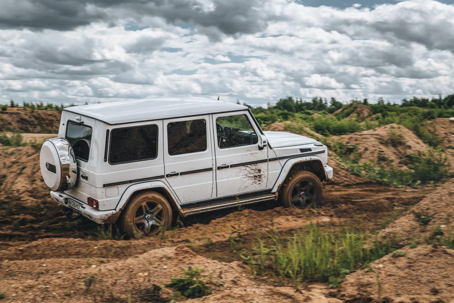 Ведь это единственный внедорожник в России, у которого можно жестко заблокировать все три дифференциала. Плюс понижающий ряд, 600 Нм дизельной тяги (у «Диско», впрочем, столько же) и скромные 205 миллиметров под нижней точкой переднего моста – которые мало что значат, потому что G-класс, в случае чего, способен просто сбрить мешающие ему части рельефа.