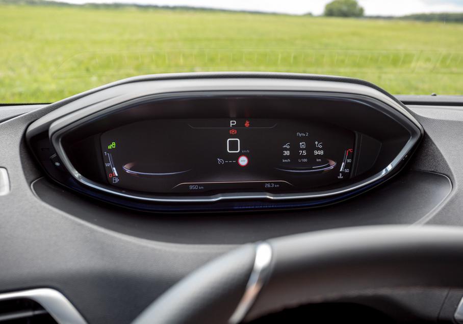 И если руль яйцом со времен дебюта на Peugeot 208 принципиально не изменился, то приборная панель стала электронной. По четкости и рафинированности она пока уступает «Фольксвагенам», но дизайн интересный и с большим количеством вариантов оформления. Хочешь, гляди на аккуратные «медные» циферблаты с движущимися навстречу друг другу стрелками. Хочешь, растяни во всю ширину карту навигации или оставь только самый минимум информации – одометр и скорость.