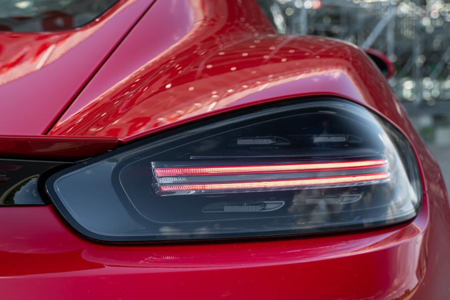 В базовой комплектации у Каймана остались уже довольно редкие биксеноновые фары, а у нас — опционная адаптивная LED-оптика за 146 тысяч рублей с четырьмя фирменными точками ходовых огней