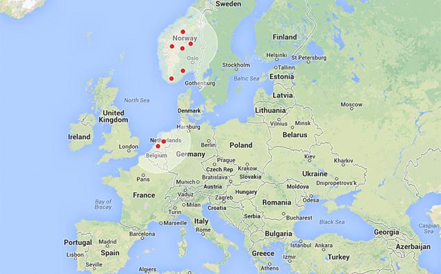 Ситуация с зарядочными станциями "Теслы" в Европе на осень 2013 года