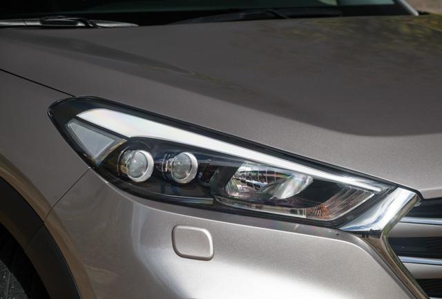 И внешне кроссовер выглядит классно: большие вытянутые светодиодные фары, хромированная решетка радиатора с тремя крупными планками и проходящая через всю боковину кузова линия-выштамповка. Динамично! От сменщика одутловатого и бесформенного ix35 мы такого не ждали.