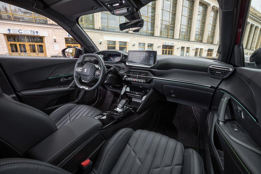 В салоне Peugeot — вообще другой мир. На этом фоне даже интерьер Lamborghini Urus кажется скучным: кабина звездолёта — не меньше! Взгляд падает на приборку с голографическими эффектами поверх спиленной верхней хорды маленького двухспицевого руля; селектор трансмиссии выполнен в виде гипертрофированного курка; функции мультимедийной системы и климата управляются клавиатурой фортепианного типа в сочетании с сенсорами; атмосферная подсветка хорошо видна даже днём; а подрулевые лепестки достойны какого-нибудь гиперкара. Всё это вписано в кокпитного типа переднюю панель, пластика которой продолжается в дверных картах.