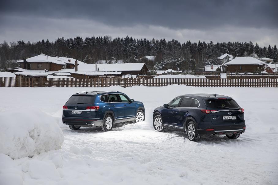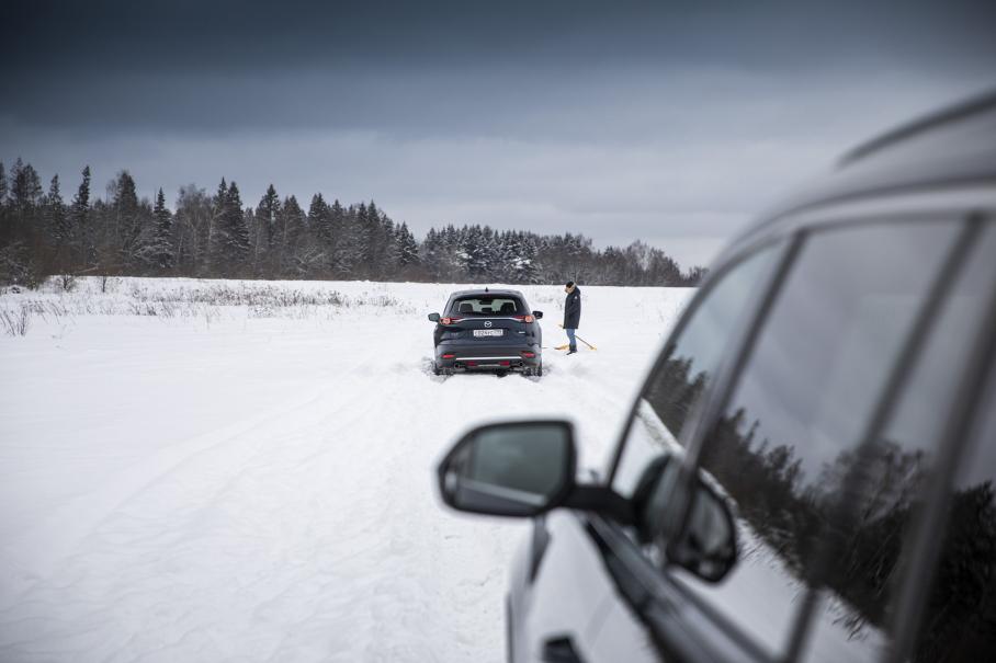По мере углубления в заметённое снегопадами поле обоим кроссоверам перестало хватать клиренса, но способность к самостоятельному передвижению они теряли в одной и той же точке. Всё потому, что полный привод Volkswagen работает эффективнее и отчасти компенсирует недостаток просвета: более ловко использует имитацию блокировок, лучше распределяет крутящий момент и даёт рыть покрытие при отключенном антибуксе. Не стало сюрпризом, что новый внедорожный режим CX-9 доказал свою бесполезность. Общий результат двух кроссоверов на бездорожье описывается словами: приемлемо и паритет.