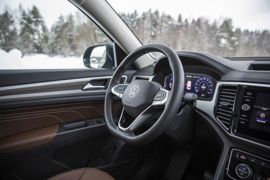 У Терамонта при рестайлинге немного обновили графические интерфейсы. Которые и без того работали хорошо, но стали ещё быстрее и красочнее. А также добавили маломощную и потому почти бесполезную беспроводную зарядку (как и у CX-9) да ещё пару незначительных мелочей. И пусть визуально всё это оформлено совсем незатейливо, но пользоваться салоном Volkswagen однозначно удобнее. Здесь лучше обзорность, гибче регулировки посадки, шире функциональность мультимедийного комплекса, отсутствуют эргономические просчёты.
