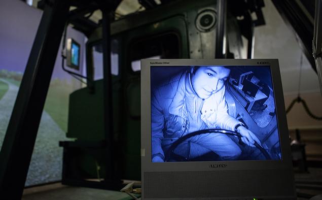 Устроено тут все очень просто. Забираюсь в высоко расположенную кабину. Органы управления, в принципе, не сложнее, чем в автобусе. Огромный руль крутится легко, педалей всего две (причем тормоз – не по центру, а прямо под левой ногой). Разве что есть масса "вспомогательных" тумблеров (ракетой ими, конечно, управлять нельзя – этим занимаются другие люди) и ручник, расположенный справа чуть ли не на полу.