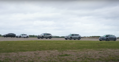 Четыре электрокроссовера и спорткар сравнили в гонке по прямой