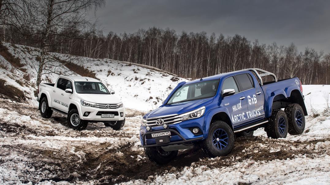 Испытываем «арктические» пикапы Toyota Hilux, у которых 10 колес на двоих